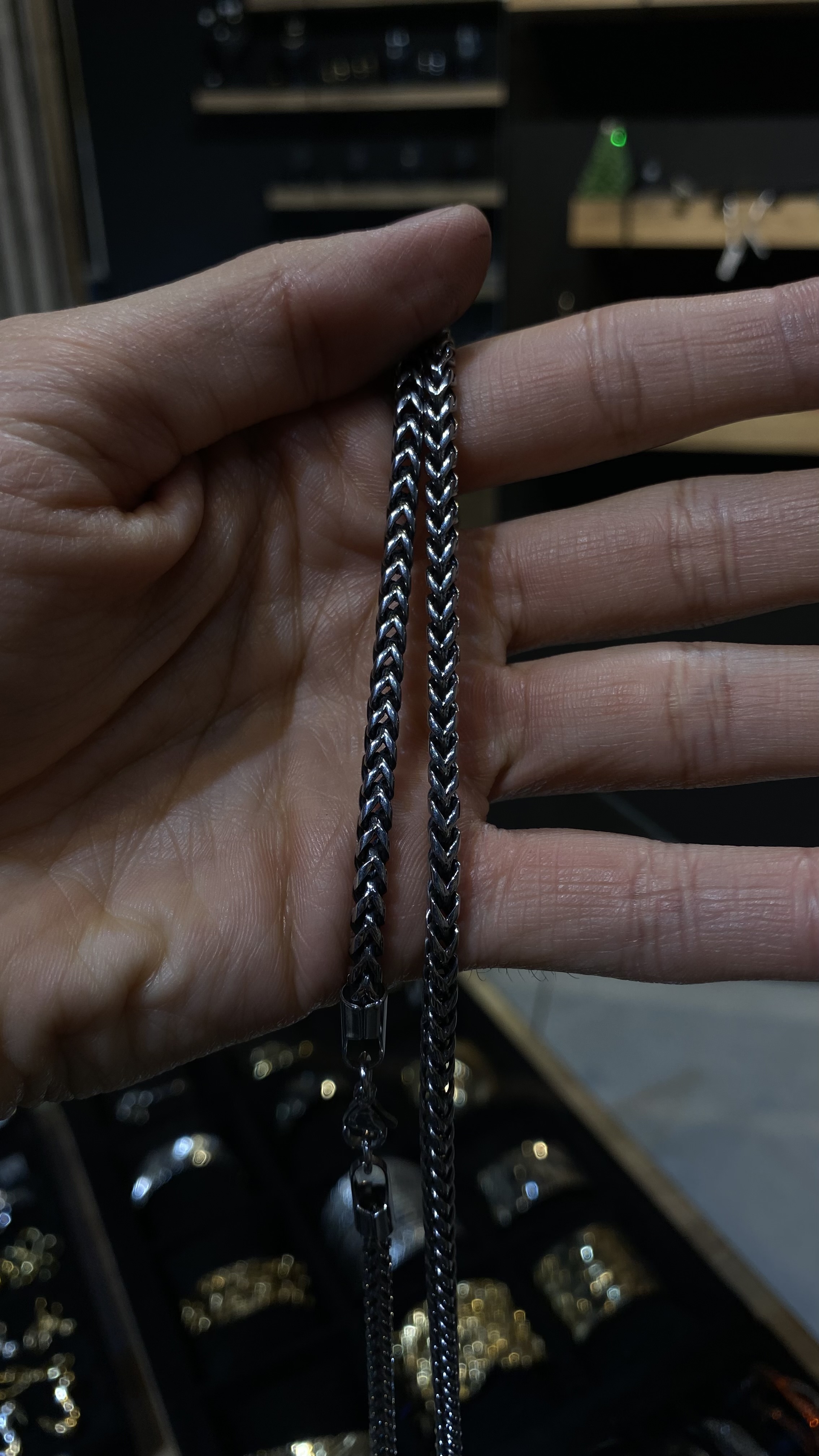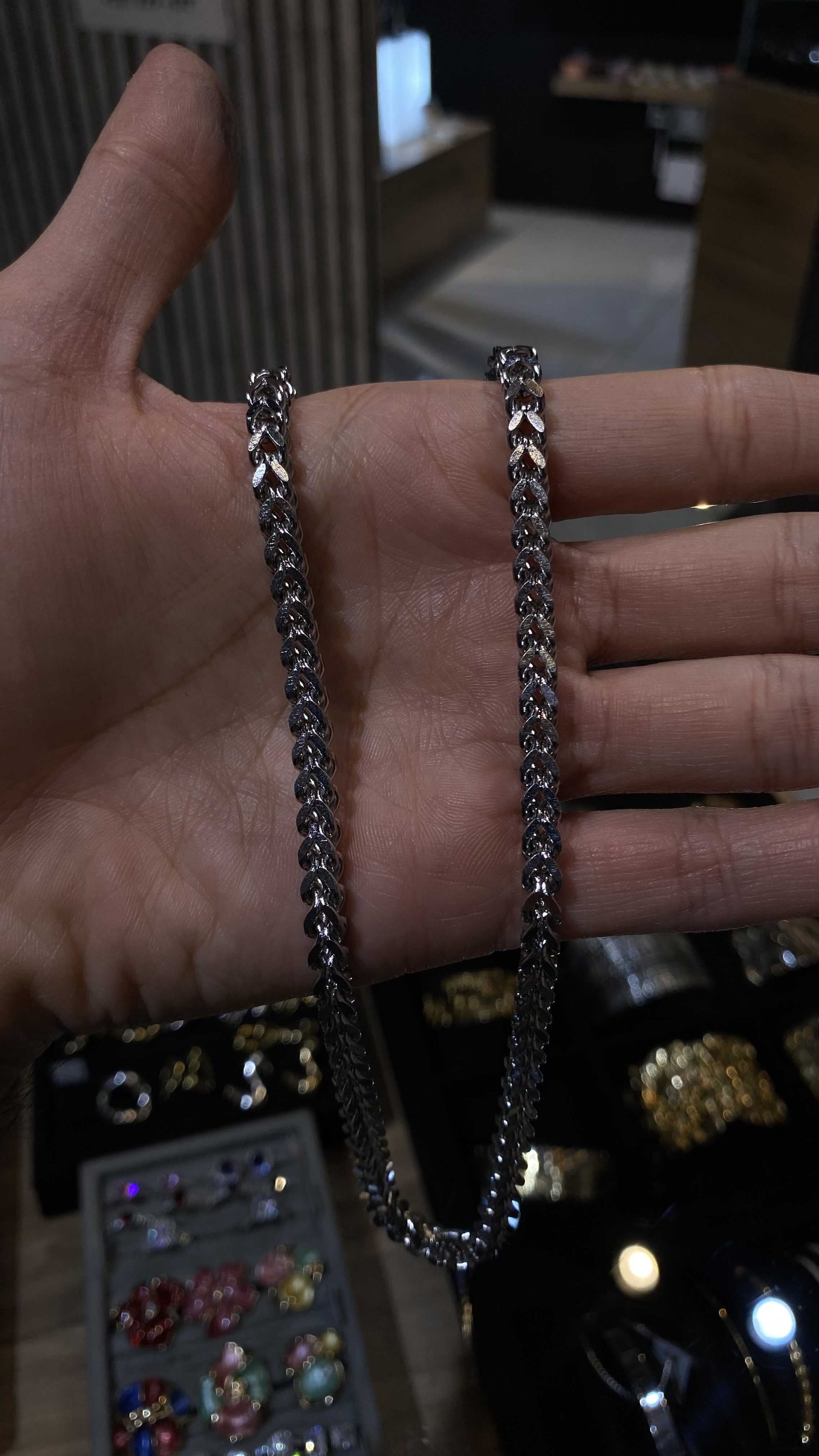 گردنبند مردانه نقره ایی بافت درشت ۵۵ سانتی