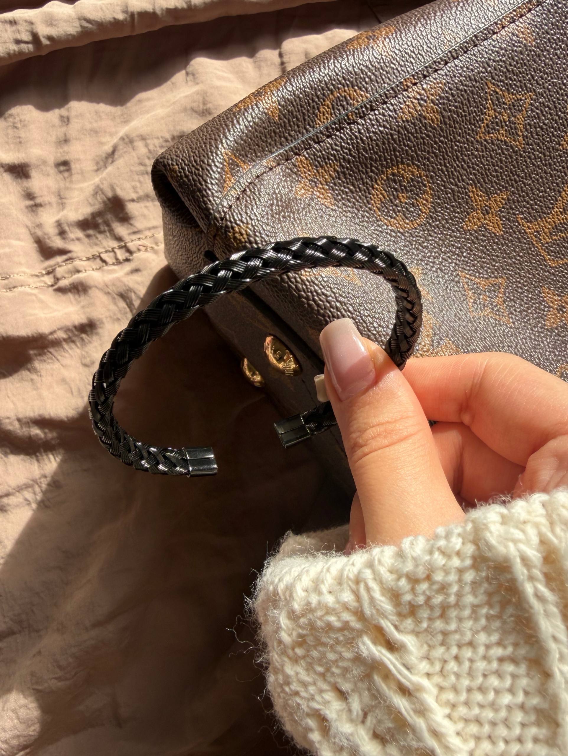 دستبند مردانه طرح کارتیر مشکی بافت درشت
