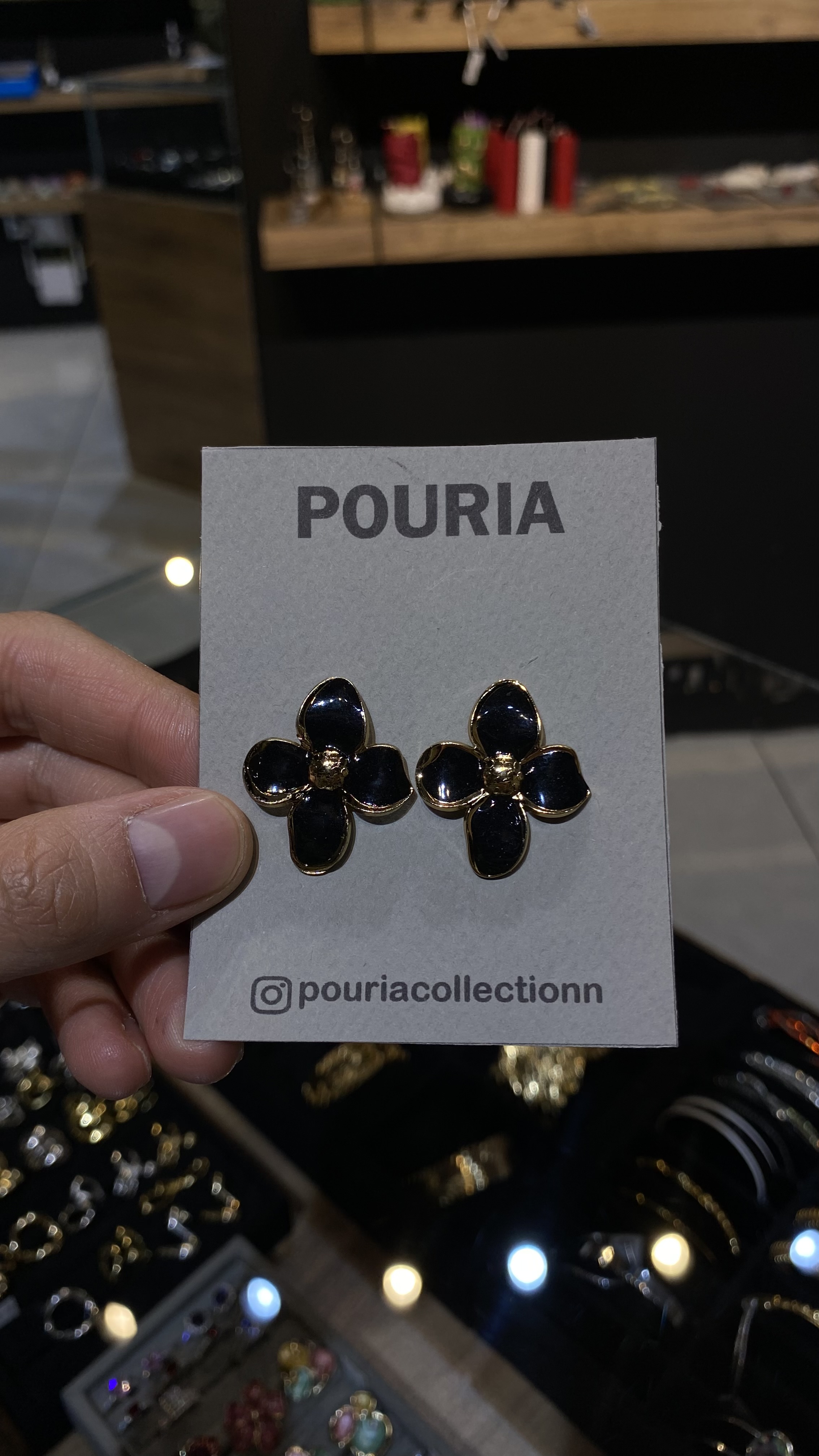 گوشواره سه تایی به هم چسبیده دایره ایی مشکی طلایی