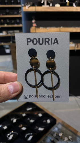 گوشواره سه تایی به هم چسبیده دایره ایی مشکی طلایی