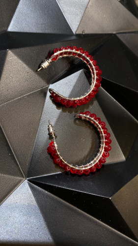 گوشواره زنانه نیم دایرهبا سنگ های قرمز