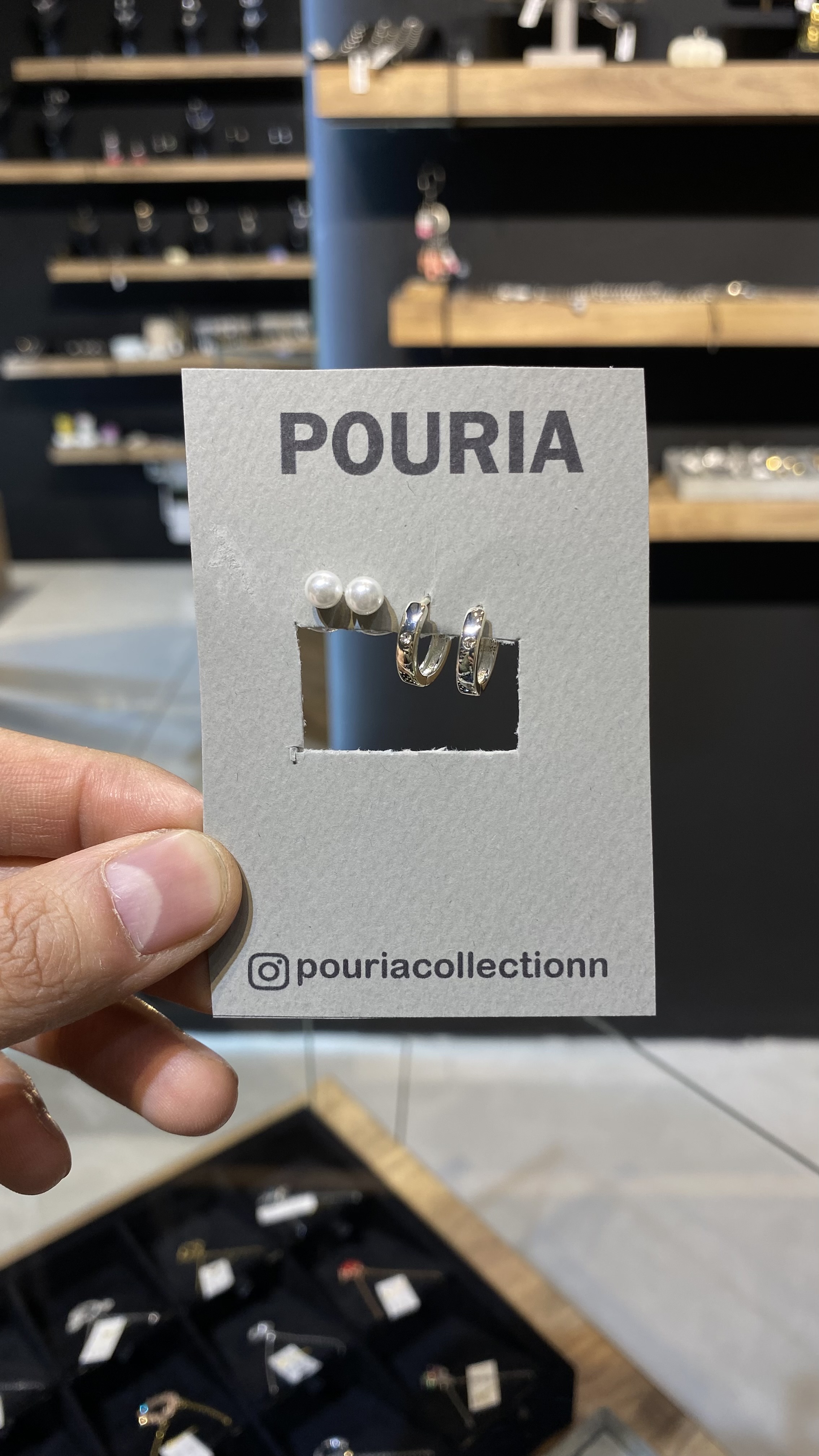 گوشواره دو جفتی یکی ساده یکی مرواریدی نقره ایی پک دوتایی