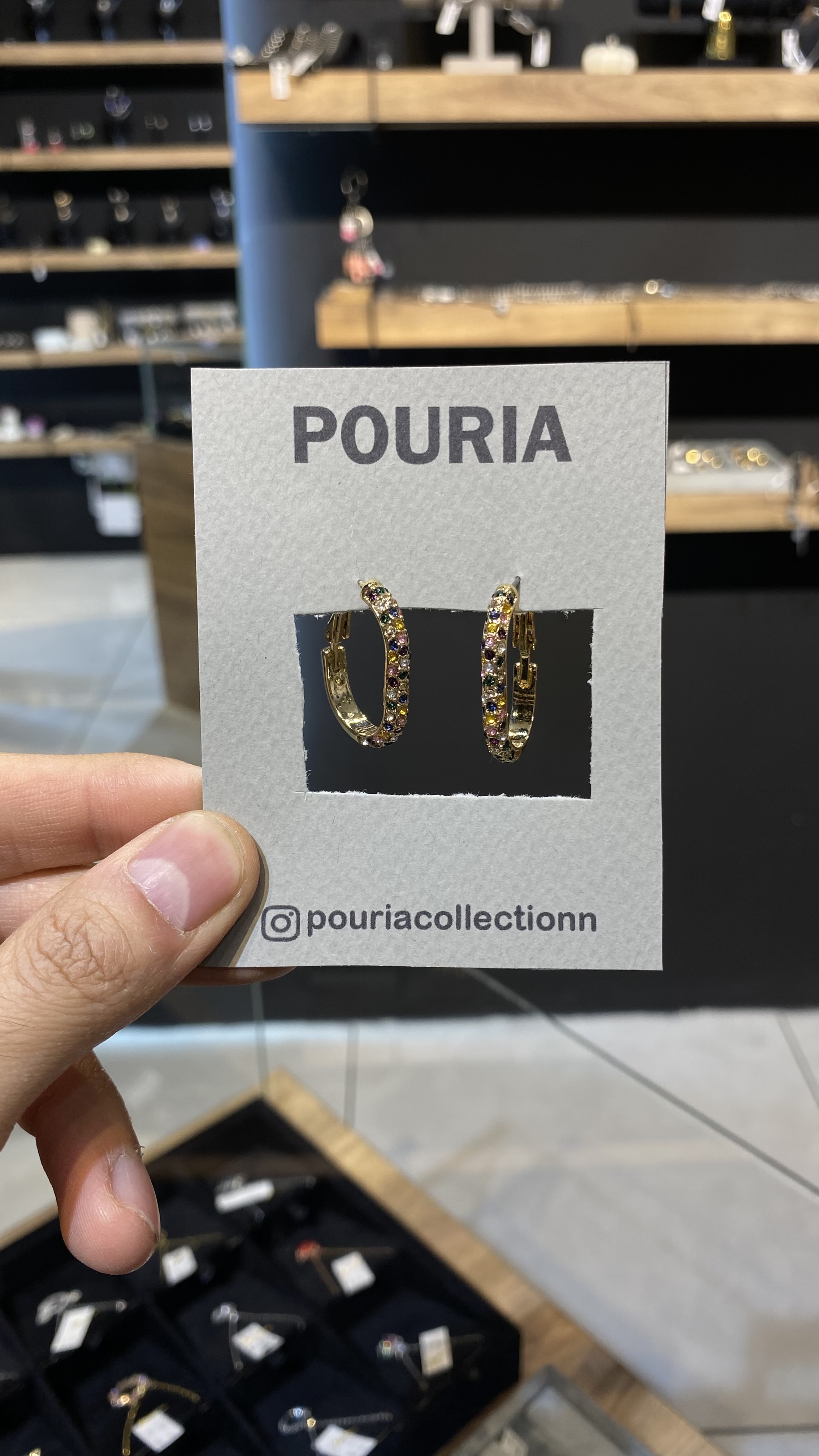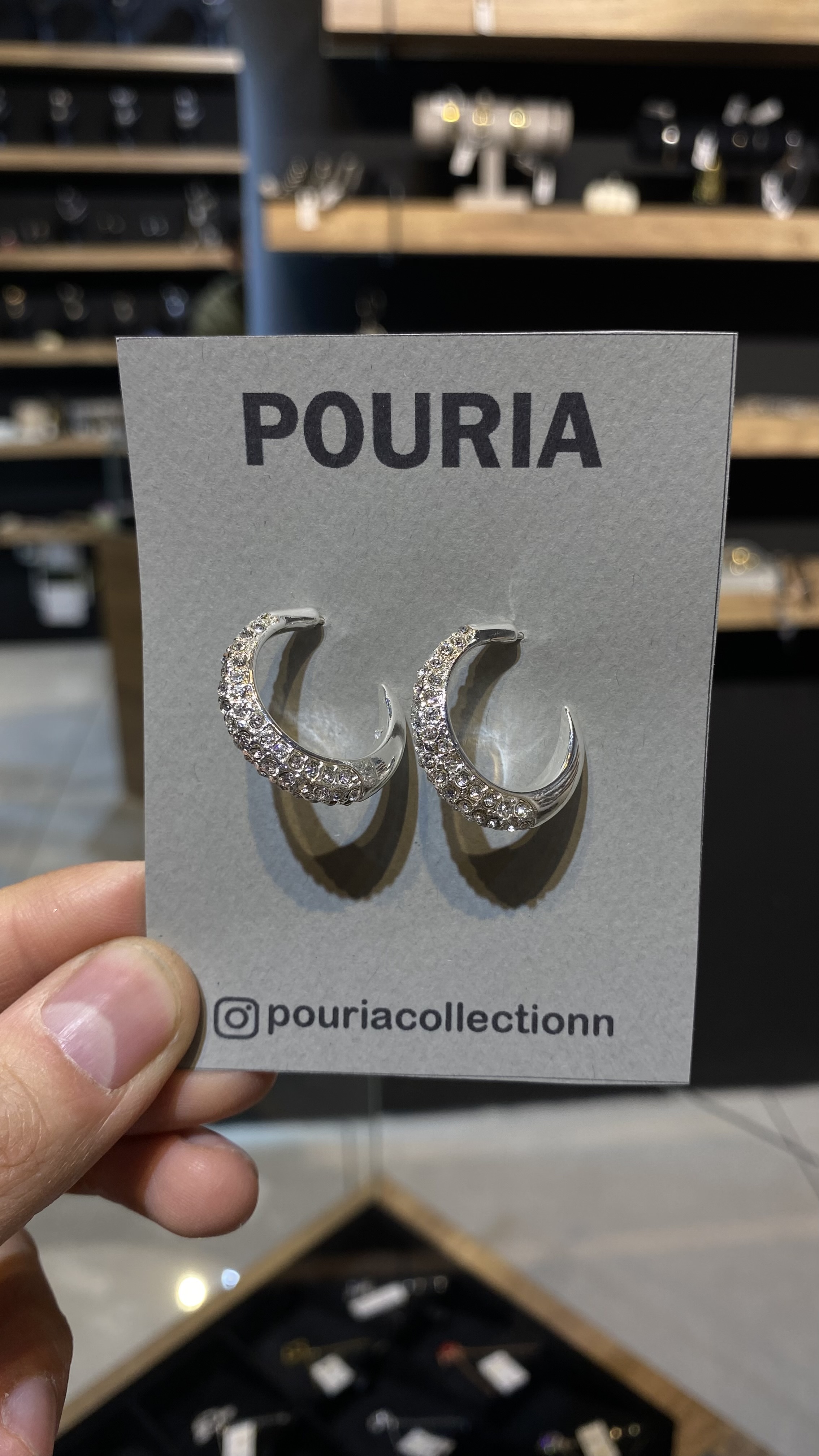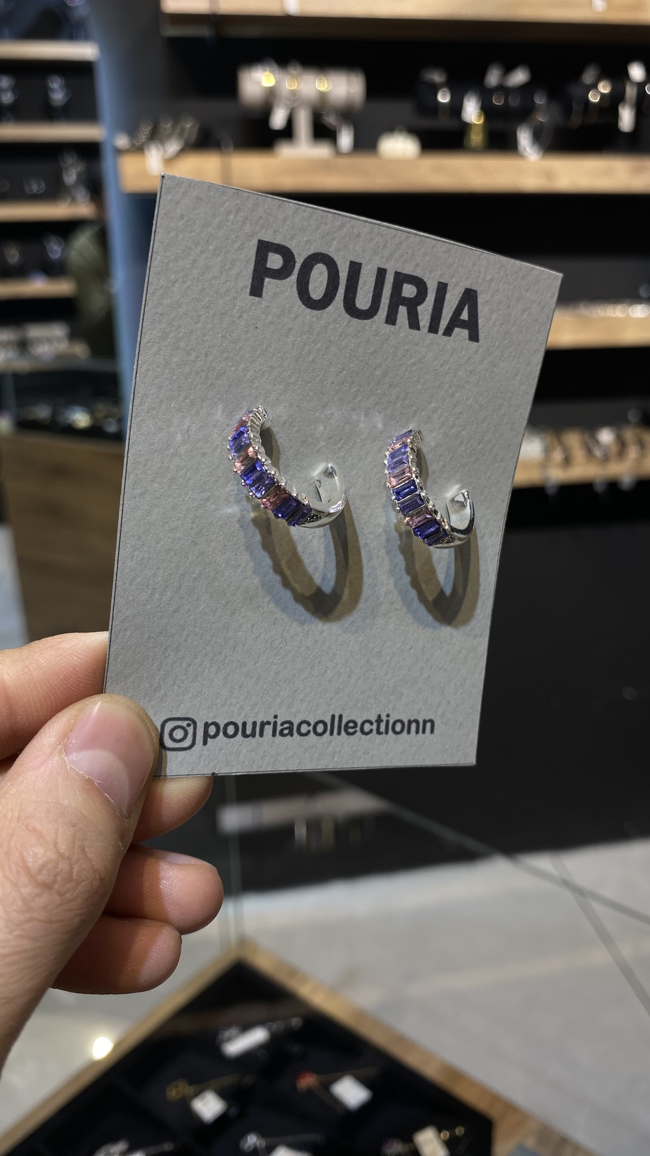 گوشواره حلقه ایی پیچ پیچی نقره ایی نگین دار