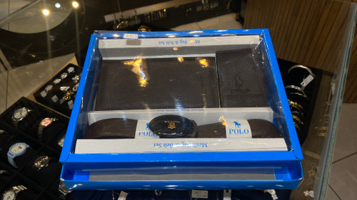 ست کمربند کیف پول و جا کارتی مردانه چرم مصنوعی