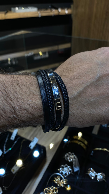 دستبند مردانه طرح چرمی استیل نقره ایی