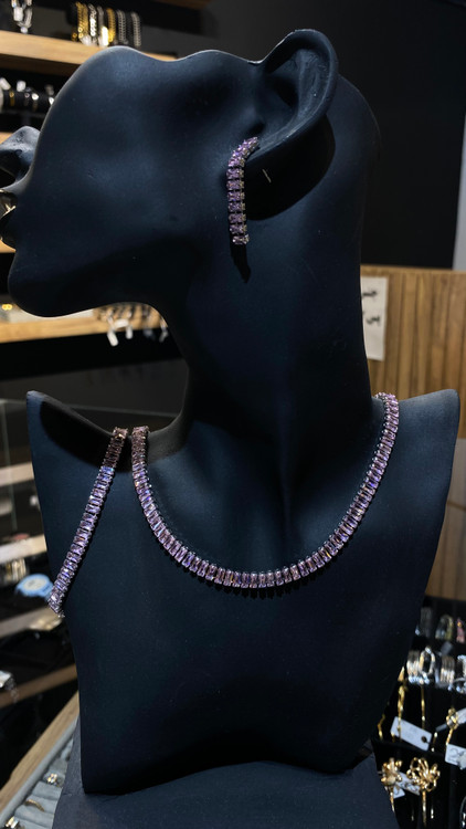 نیم ست جواهری زنانه تنیسی صورتی ریز