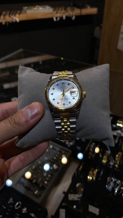 ساعت مردانه رولکس رنگ نقره ایی زرد تقویم دار
