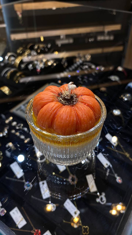 شمع کدو رنگ نارنجی با ظرف