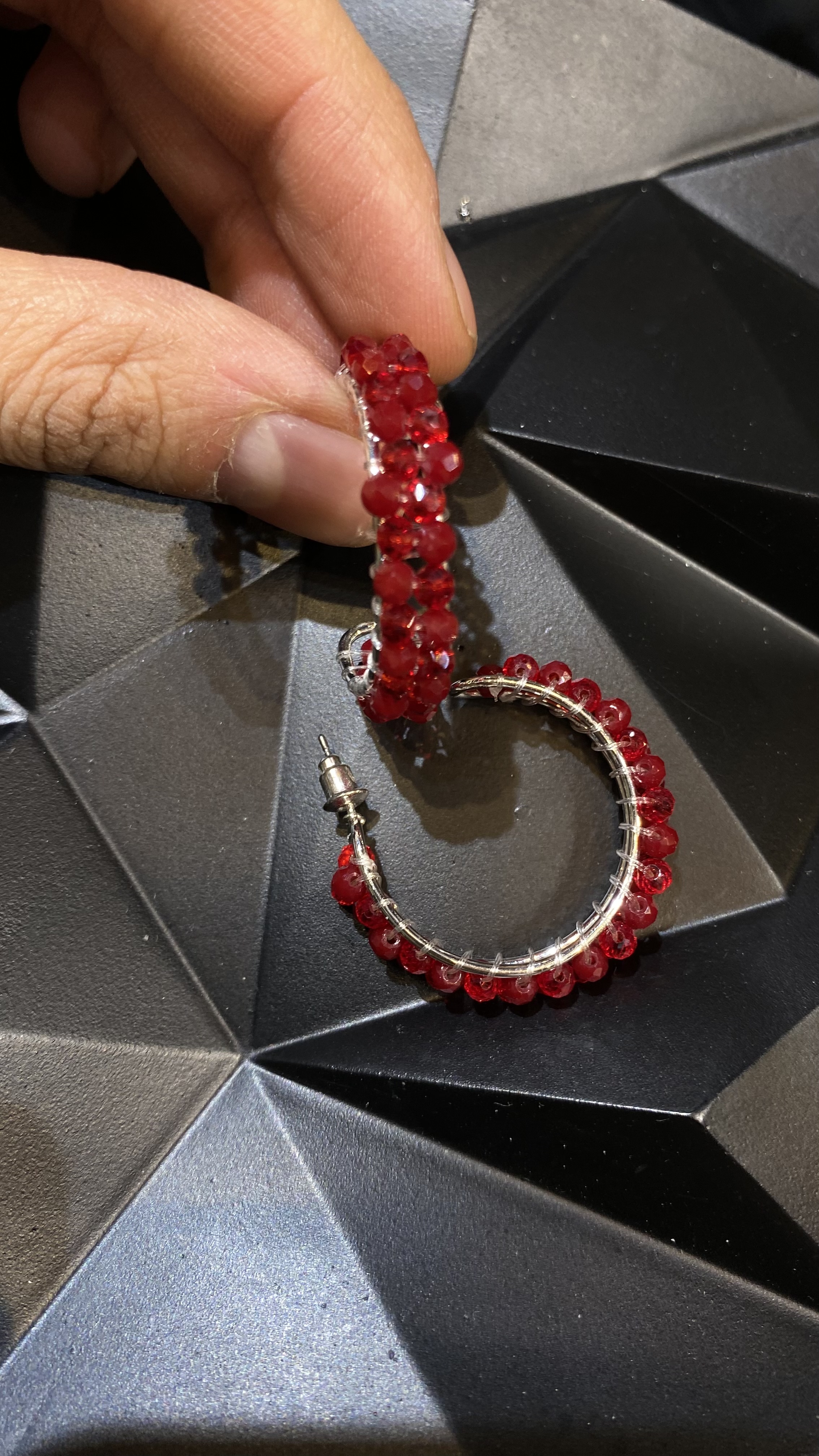 گوشواره زنانه نیم دایرهبا سنگ های قرمز