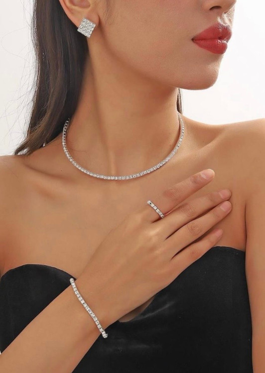 ست کامل تنیسی گردنبند طوق همراه با گوشواره انگشتر دستبند
